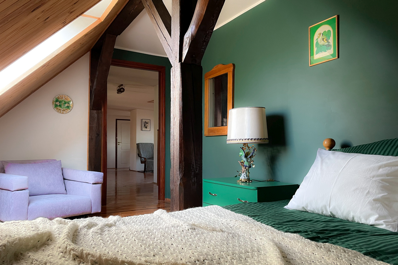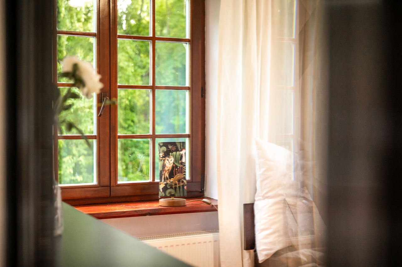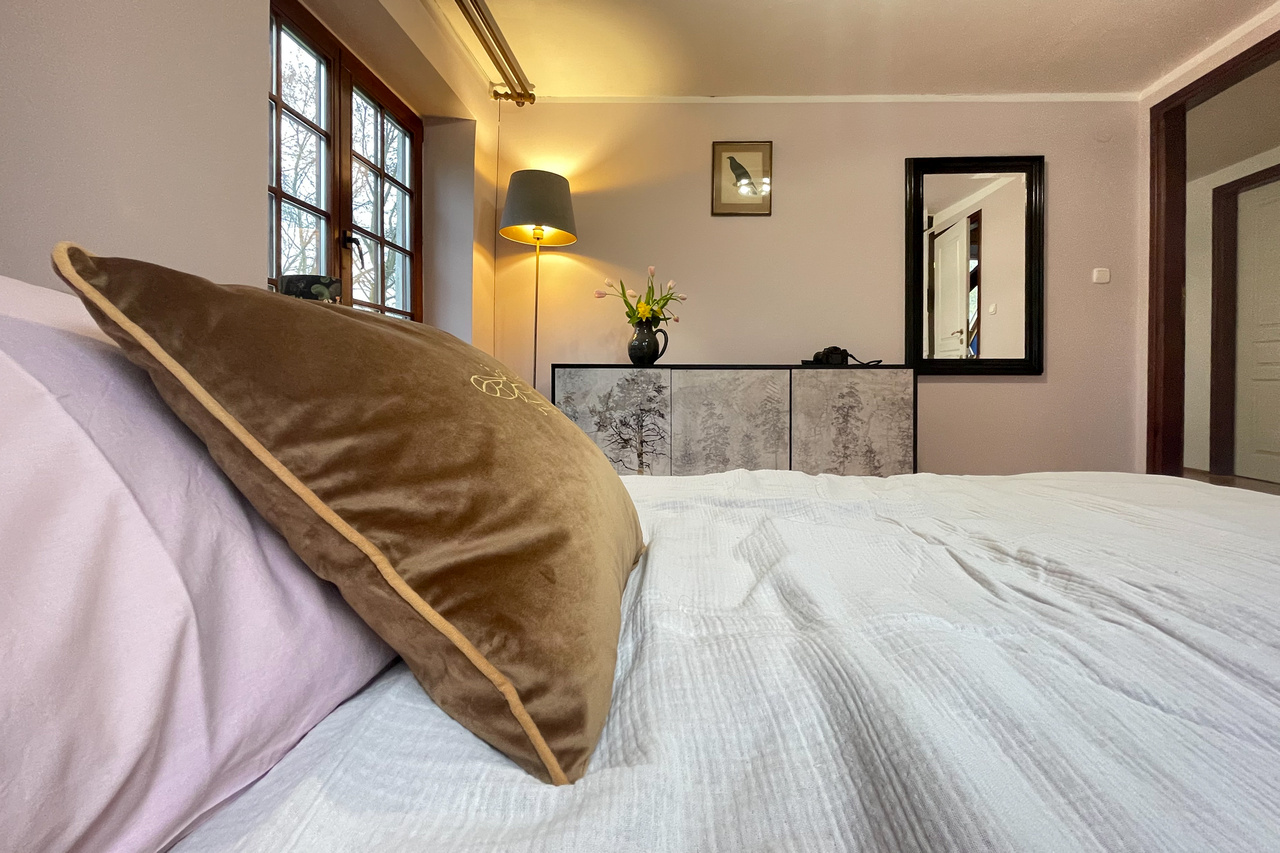 Wasze sypialnie zlokalizowane są na piętrze domu, wszystkie są nieprzechodnie. Każda z nich ma swój indywidulny klimat i wyjątkowy widok. Każda ma okno, lub dwa. W każdej śpi się głęboko i spokojnie.